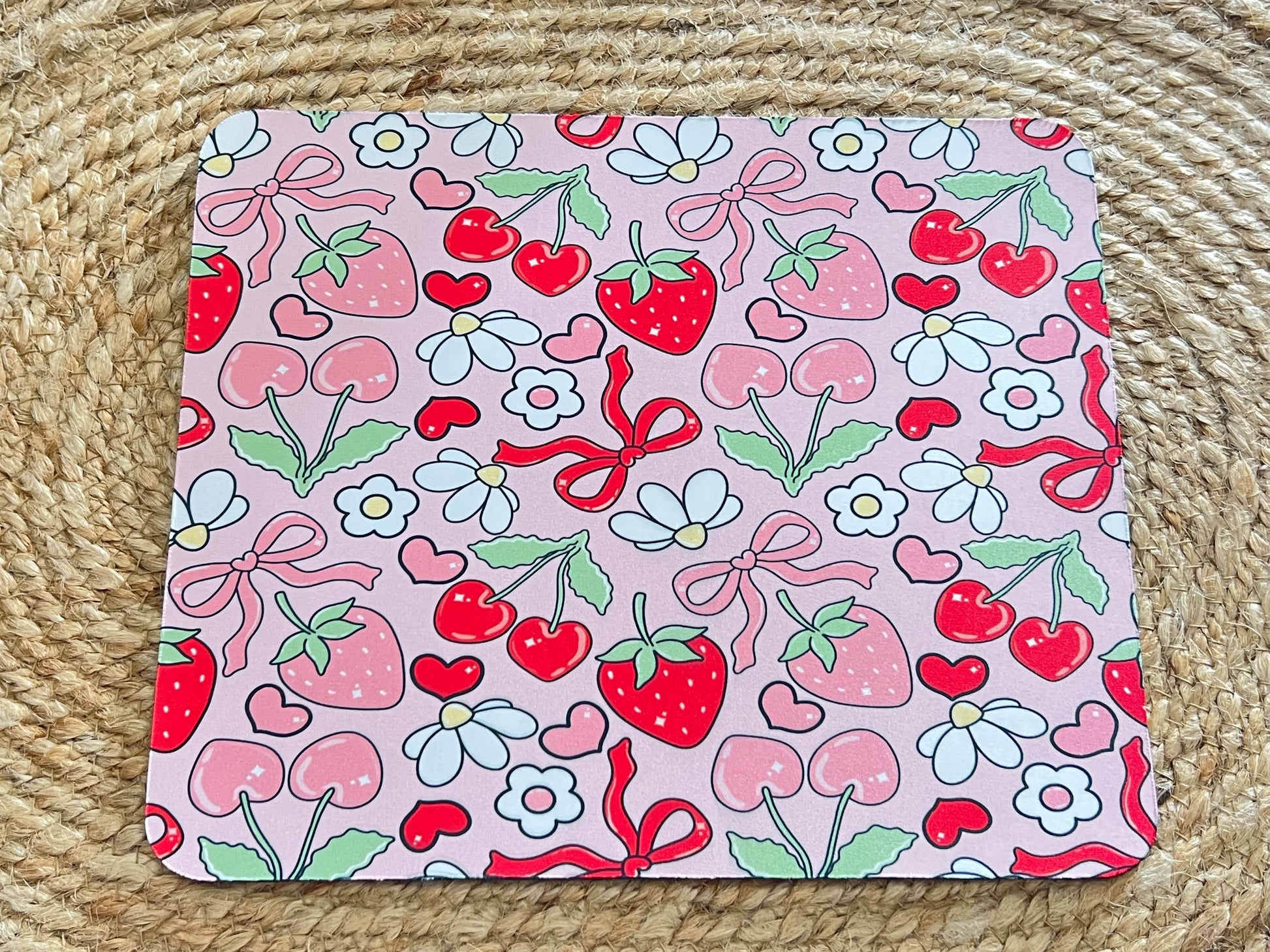 Add a touch of fruity sweetness to your workspace with our Berry Sweet Mouse Pad! Featuring a vibrant pattern of strawberries, cherries, bows, and daisies, this adorable pad is the perfect way to liven up your desk. Its smooth surface ensures effortless mouse movement, while the non-slip rubber backing keeps it in place. Whether you’re working, gaming, or browsing, this cute and colorful pad will brighten your day and keep you inspired. 🍓🍒✨